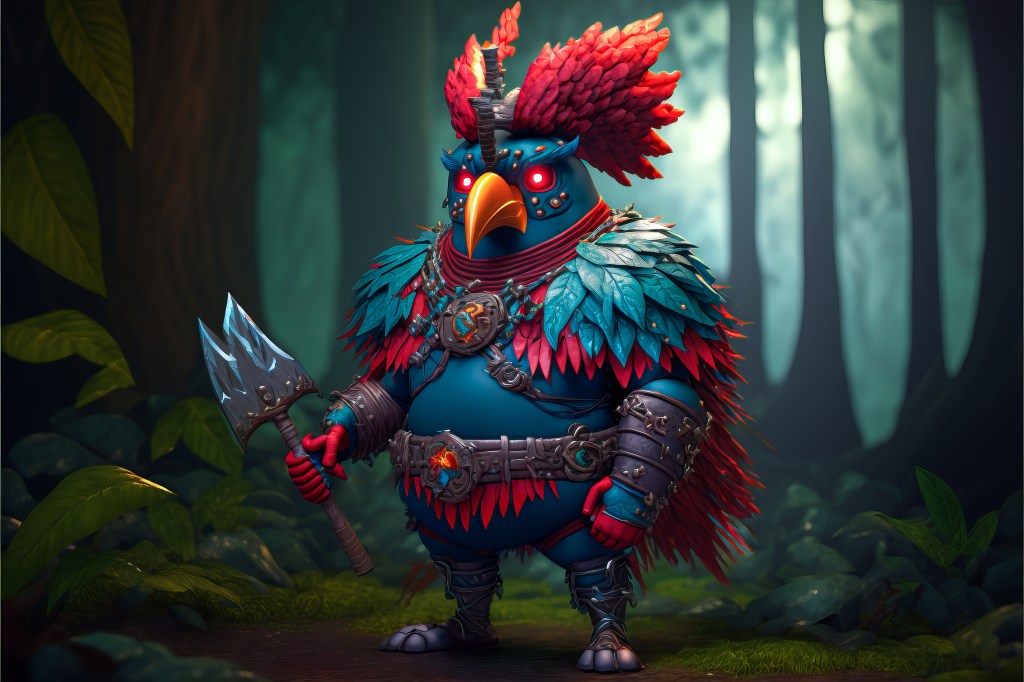 /Imagine Prompt: rooster, green head, warrior, armored, strong, medievalpunk, holding Viking axe with blue aura, cinematic, full body, ultra wide angle, gritty, atmosphere, unreal engine 5, 4k, 8k, 16k, 32k, cockpunch, Tim Ferris –v 4 – Upscaled by @ironclaw (fast)