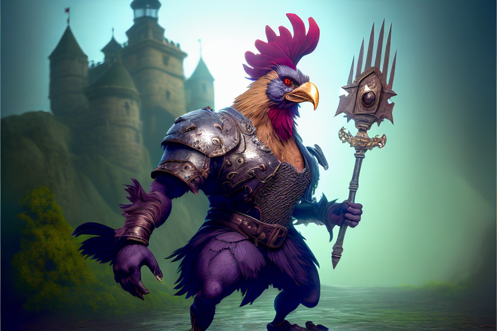 /Imagine Prompt: full shot, full body, tim ferriss as a cockpunch rooster warrior, cinematic view, 4k, high definition, medievilpunk, gritty castle background –ar 3:2 –v 4 – Upscaled by @ironclaw (fast)