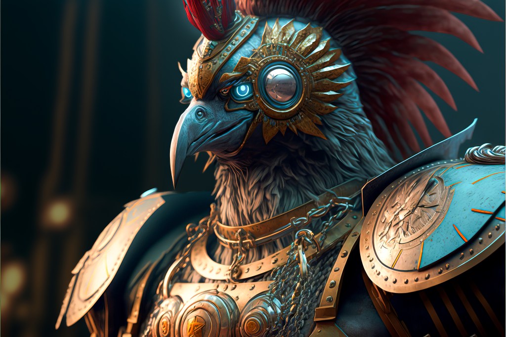/Imagine Prompt: time ferris as a cockpunch rooster warrior, cinematic view, 4k, high definition, medievilpunk –ar 3:2 –v 4 – Upscaled by @ironclaw (fast)