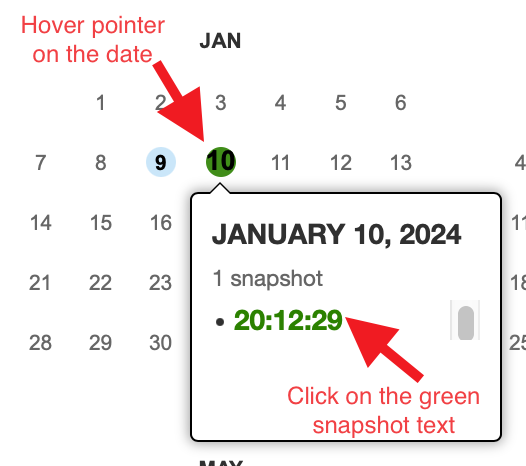 STEP 4: Click on one of the previous versions of the site.
