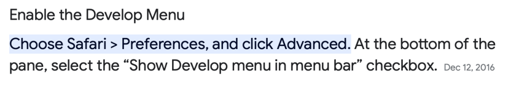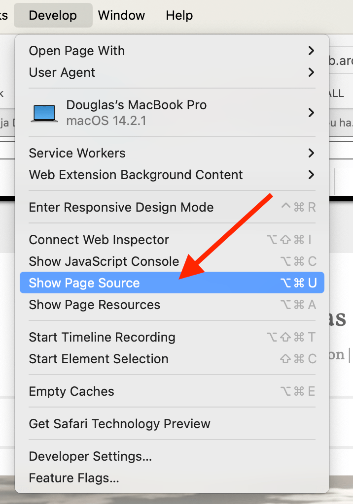 STEP 5: Make sure you have the Develop menu in Safari to look at the page source. If you don’t have this menu Here is how you get it. Most browsers will have a menu option to look at the page source.
