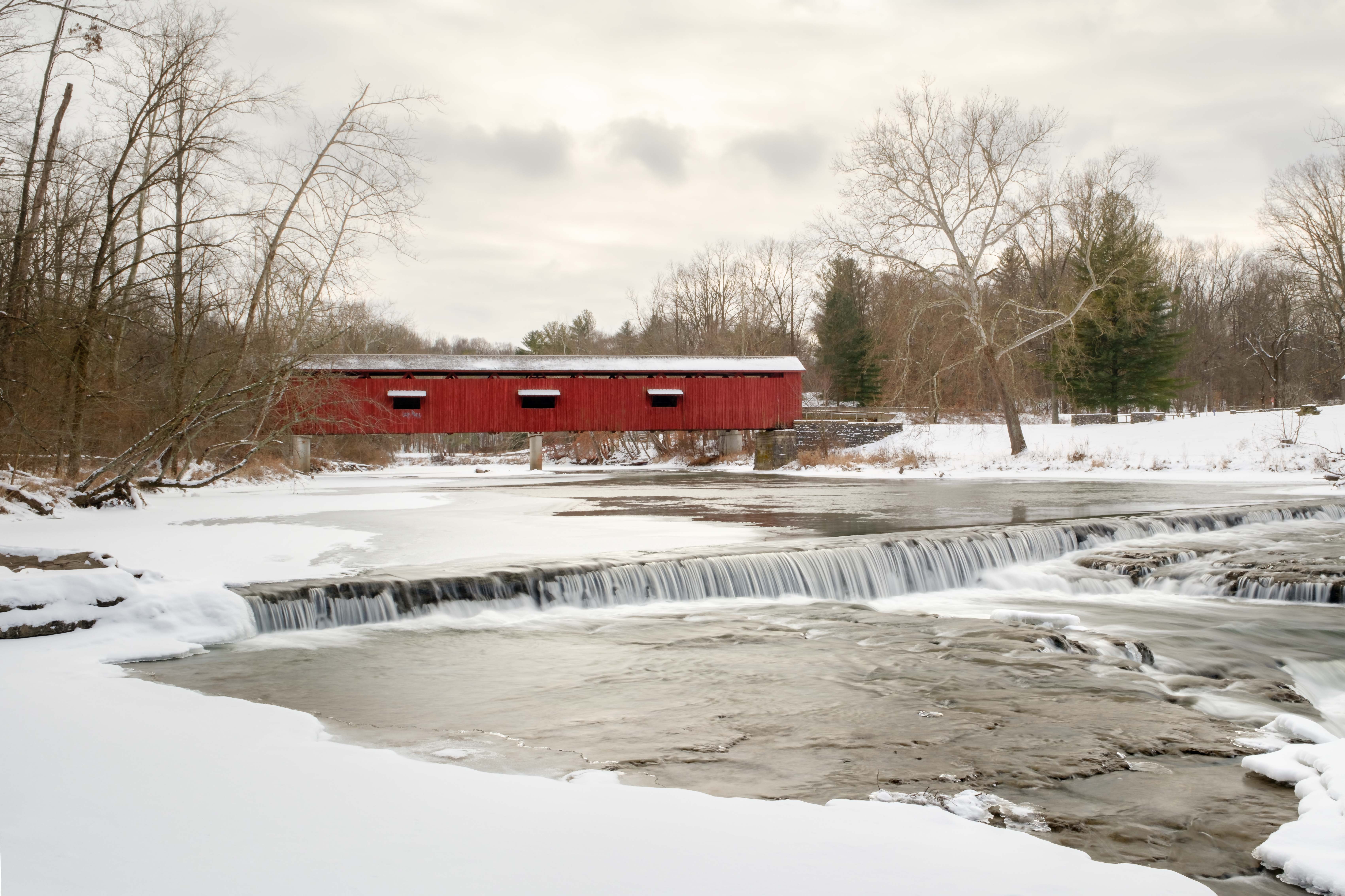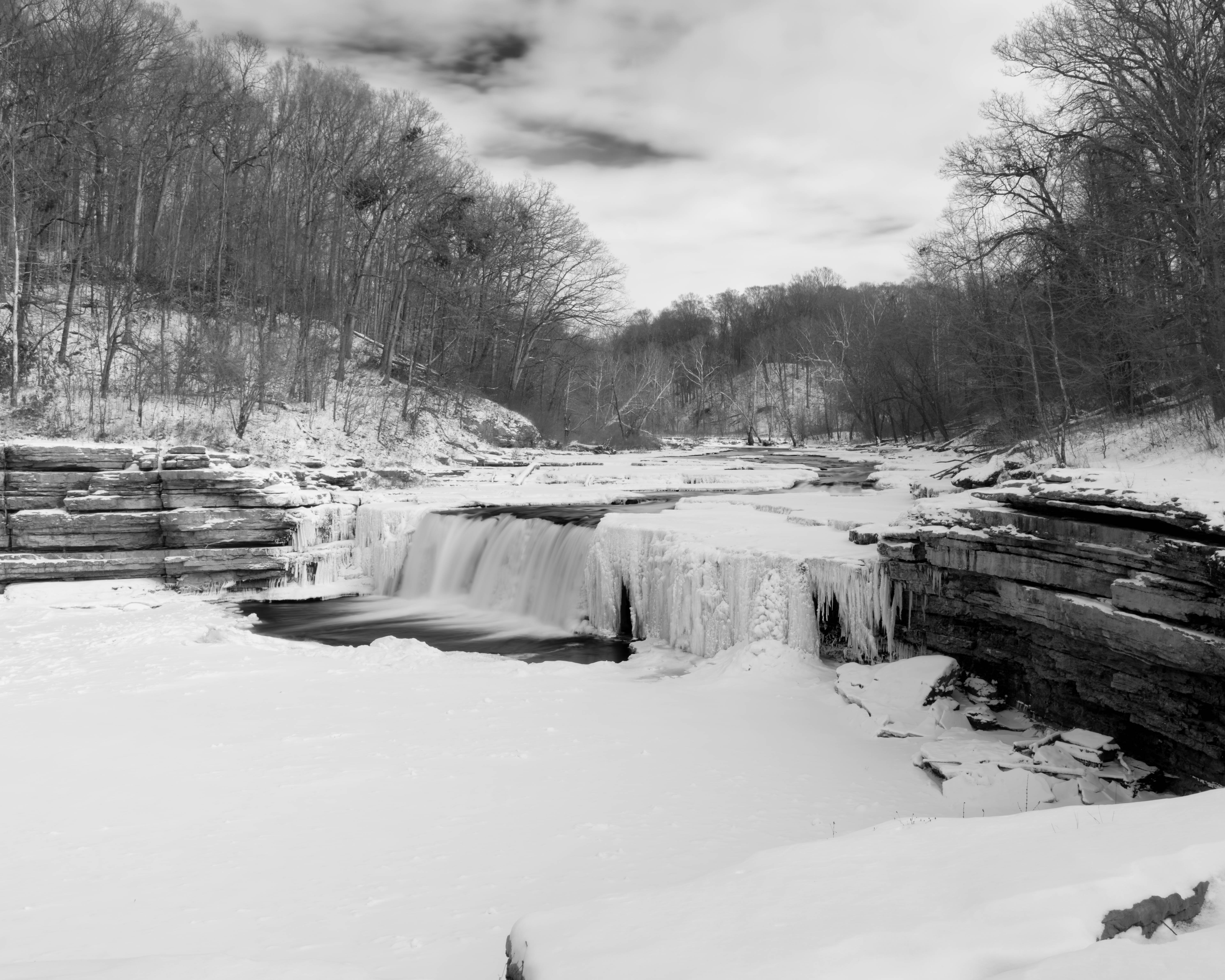 This is a beautiful recreation area just west of Indianapolis. The waterfalls are easy access with parking nearby and a nature trail along the river. There is one hill to climb up to Upper Falls and the rest of the trail is flat. I visit a couple times per year and I know the falls looks really interesting when we have a week or more below 20F. I was not disappointed. I added some maps of the area at the bottom if you are curious where I took the photos.