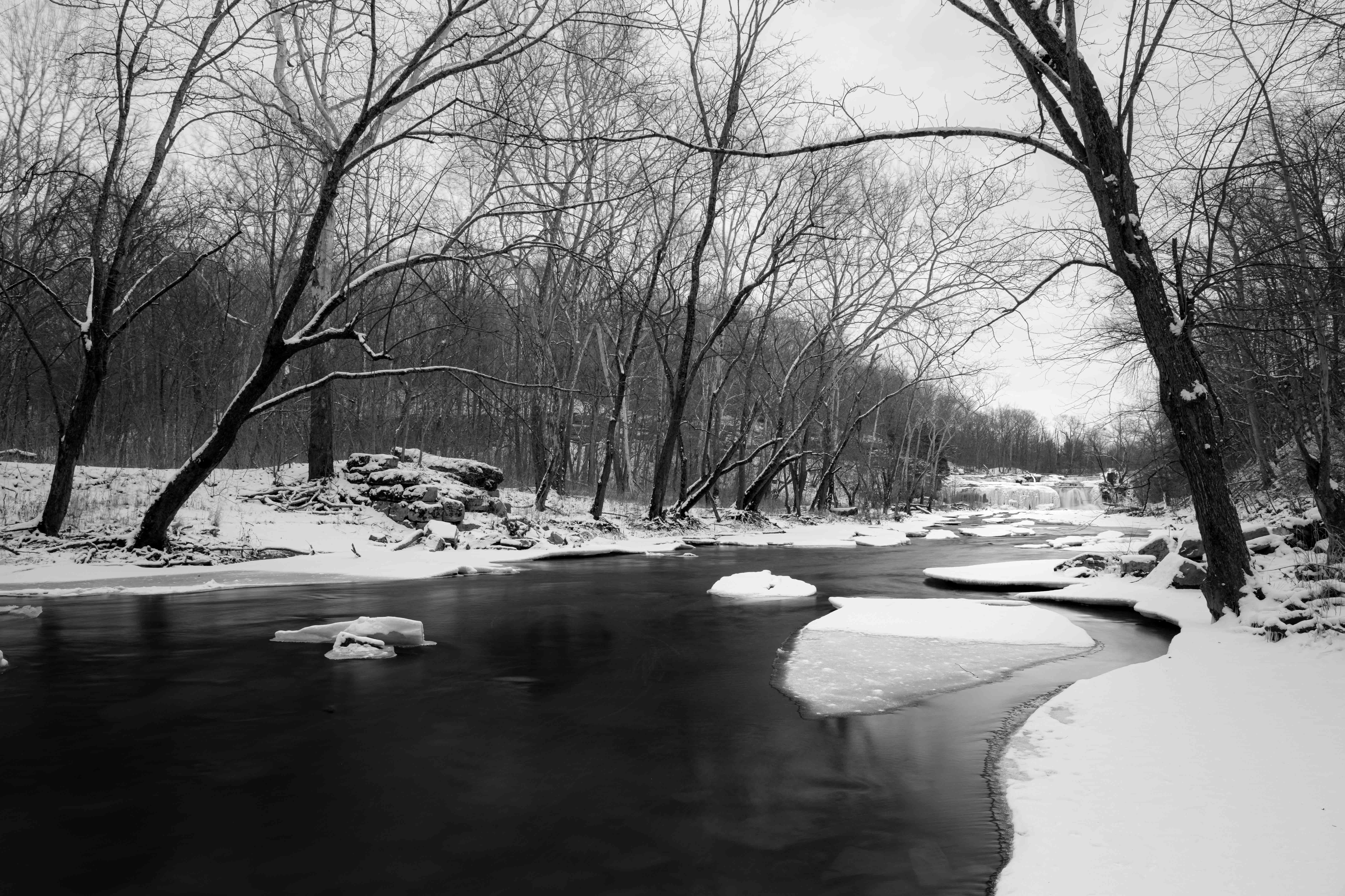 I did not take any photos of the larger upper falls that I was happy with. There is no marked or easy access to the base of the falls so it can be extremely treacherous along the river’s edge in the winter …especially when you cannot tell what is rock and what is ice. It would be easy to end up in the river. I played it safe and stuck to the easier access shore lines.
